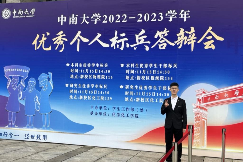 “坚定理想信念,不断地学习理论知识,用先进思想武装自己,努力提高个人理论水平与党性修养。”他表示,作为一名青年学子,在理论学习上更不能放松,“花更多的时间,多记多背多去领悟”。他坚持以中共党员标准自我要求,内外兼修:于其身,努力提升自己的政治素养,紧跟党中央步伐;彼其外,以实际行动为周围同学做出榜样,影响和引领同学共同进步。他时常通过“学习强国”增进知识,学习贯彻习近平新时代中国特色社会主义思想,还积极观看央视新闻和一些自媒体平台去了解一些最新的资讯和时事要闻,紧跟先进思想。在学生工作中,他积极发挥模范带头作用,于公众号上录制《学“习”有声》栏目,学习习近平总书记在“一带一路”高峰论坛上的主旨演讲。同时他不忘加强党团联系,作为班长带动班级同学学习党的二十大精神,以“深刻理解中国式现代化”为主题,以主题班会、街头采访、团日活动为形式开展,让同学们愈加深入地了解中国式现代化。在用理论知识武装自己的同时,他用积极行动感染带动周围的同学,带领班级同学学习党的先进思想,用科学理论指导学习生活。