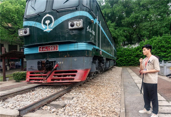 参观之初,全员站在铁路园正中央,由许倩同志带领全体学员回顾中南铁路园的由来以及建设过程。作为庆祝原长沙铁道学院建校六十周年的一份厚礼,铁路园园区呈露天式开放,有四条线路,三条线路上分别陈列三台机车,每一条线路,每一台机车都背负着中国轨道发展的重要使命。许倩同志提到这三辆机车见证了中国轨道铁路的高速发展,而在这升级换代的过程中涌现出无数优秀的铁路共产党员,他们在铁路建设中发挥着领头羊的作用,为中国铁路事业做出了不可磨灭的贡献。