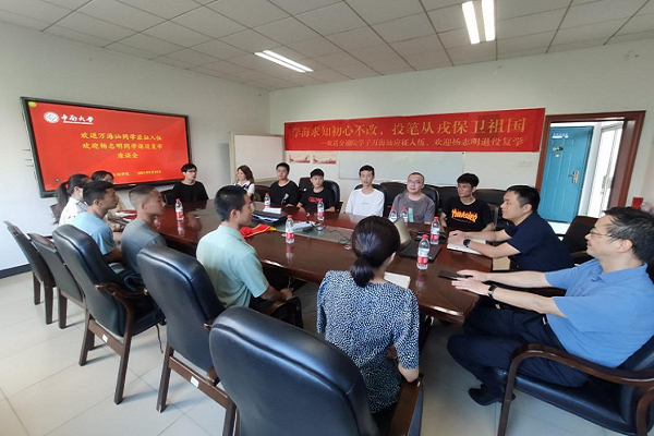 9月10日上午9点,海角网 在交通楼322会议室为学院今年应征入伍的万海汕同学、退役复学的杨志明同学举行了座谈会。学院党委贺志军书记、宋晓东副书记,辅导员张佳琪、任琭、石晓琪、郑繁简,2020年退役复学的龚智龙同学及19、20级学生代表参加了此次座谈。会议由学院党委副书记宋晓东主持。