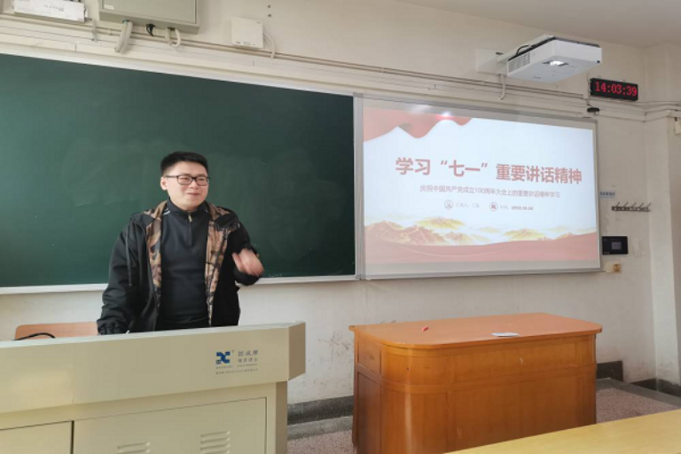 首先,丁晟同志主要围绕“庆祝中国共产党成立100周年大会”上习近平总书记的重要讲话展开讲解为同志们系统阐述了习近平总书记在本次讲话中的大重要内容:“回顾中国共产党百年光辉历程”、“诠释中国共产党的伟大建党精神”、“展望中华民族伟大复兴的九个必须”、“寄语广大青年和号召全体中国共产党员”。最后,丁晟引用习近平总书记的讲话劝诫和鼓励支部同志要牢记初心使命,坚定理想信念,践行党的宗旨,为中华民族的伟大复兴中国梦不断奋斗