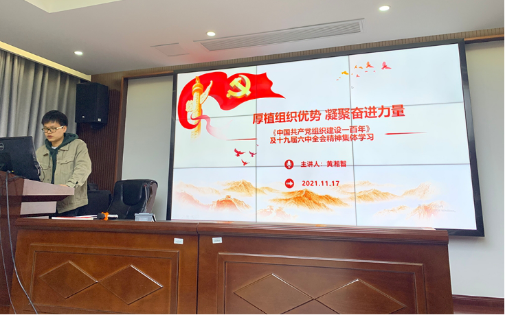 11月17日晚7点,研究生第二党支部于交通楼425教室顺利开展“厚植组织优势,凝聚奋进力量”主题党课。党课由支部书记黄湘智同志主讲,主要围绕《中国共产党组织建设一百年》一书及十九届六中全会精神展开,全体支部党员及部分入党积极分子参加本次党课学习。