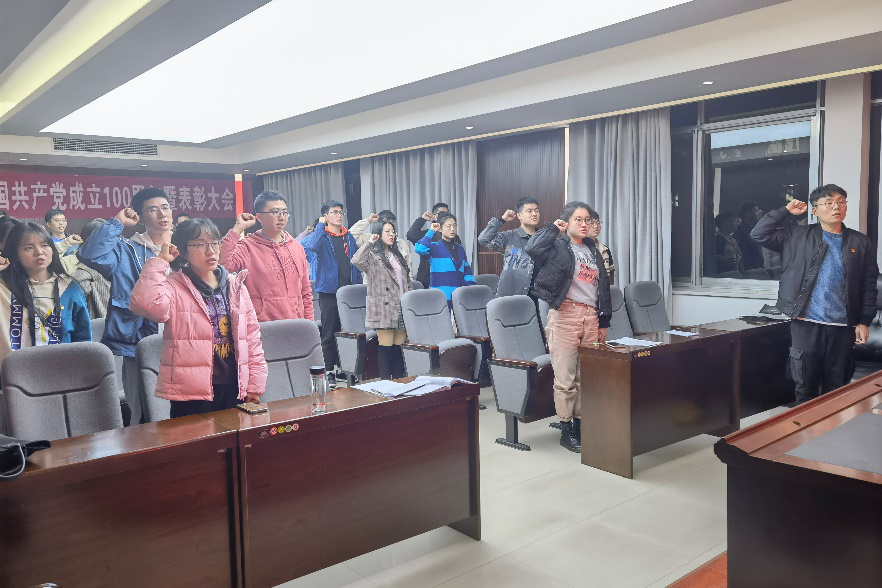最后,支部书记蔡明旭同志带领新发展的党员进行了入党宣誓,原支部党员重温入党誓词。支部书记蔡明旭同志对新接收的预备党员表示祝贺,并希望大家在今后的生活、学习中,能以更加严格的标准要求自己,牢记组织的教导,把入党的荣誉感真真切切落实为为人民服务的责任感,用实际行动践行党旗下的誓言。