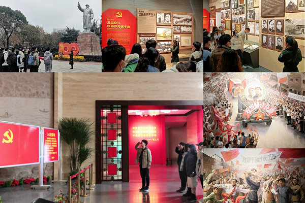 下午一点半,全体同志从铁道图书馆乘车前往中国共产党长沙历史馆。同志们先来到了毛主席塑像广场,由申慧涛等五位同志先后讲解陈望道、董存瑞、杨开慧等英雄的故事,同志们都被革命战争年代到和平时期涌现的英雄人物和先进人物事迹所感动和震撼。