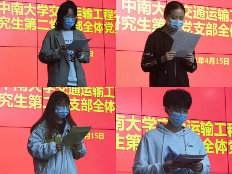 4月15日晚7点,研究生第二党支部于交通楼425教室举行全体党员大会,讨论杜梦笑、杨诗瑶、李瑶、莫巍威四位同志转正事宜。会议由支部书记黄湘智同志主持,支部全体党员参会。