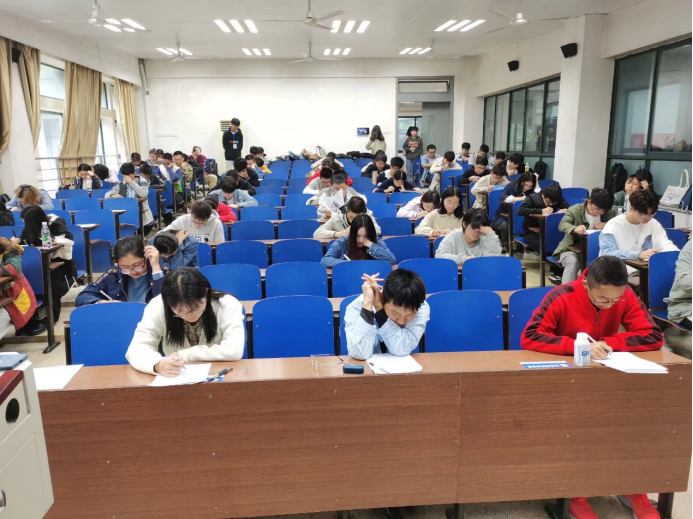 比赛当天,工作人员组织参赛同学有序签到,按序就坐。竞赛过程中,参赛同学均认真作答。“无哗战士衔枚勇,下笔春蚕食叶声”两句诗所描写的考场气氛正是如此。考试大约持续一个小时,秩序井井有条。竞赛结束后,全体参赛同学有序离场,工作人员收集同学们的答卷,考试就此结束。