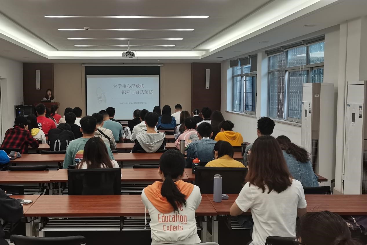 会议伊始,李静茹老师对心理危机的现状进行了总体概括。在讲解中,李静茹老师依次指明了心理危机的定义,对比了异常心理和正常心理,列举了许又新病和非病三原则等实例,让在座同学们对心理危机有了一个初步了解。
