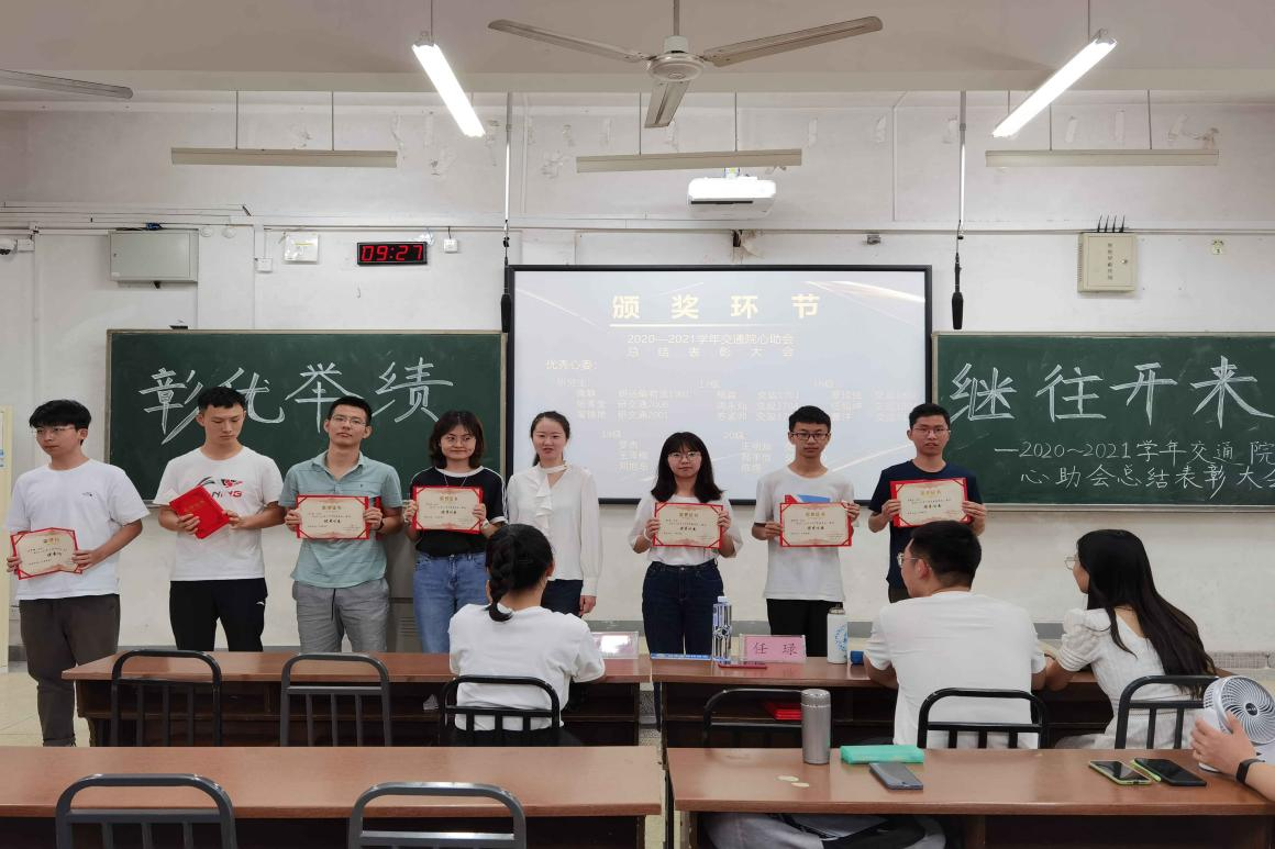 通过本次大会,交通院心助会回顾了2020-2021学年的诸多工作成果,勾勒出下一学年工作的美好蓝图,同时表彰了积极从事心理健康工作的学生干部,激发了大家的工作热情。交通院心助会将会不断努力,持续关注同学们的心理健康并及时进行朋辈互助,为营造健康和谐的校园氛围贡献力量。