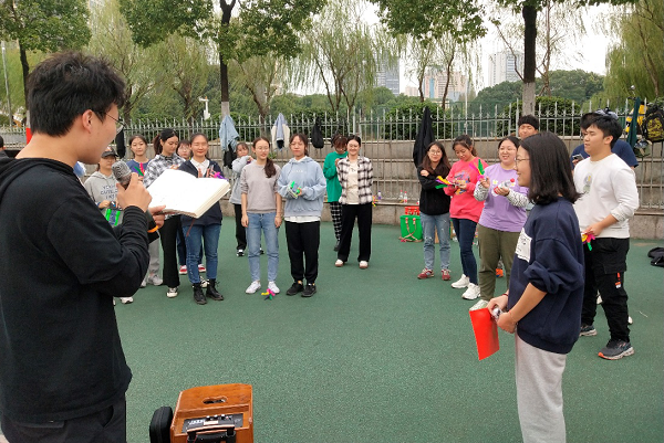 本次趣味运动会包括四个项目,分别是“滚铁环”、“毽球”、“背篓绣球”和“翻扑克”,每一场比赛的参赛选手都被分成五支队伍。比赛项目趣味性十足,不仅让同志们体验了少数民族的传统运动项目,还让同志们在体测来临之际加强了身体锻炼。秉持着“友谊第一,比赛第二”的原则,此次趣味运动会正式拉开帷幕。