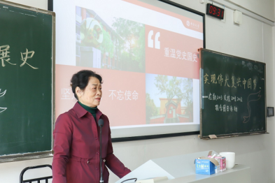 活动伊始,应数2003班团支书李喆简要介绍了班会流程。随后,卢主任上台开展了“重温党史国史——坚定信念,不忘使命”主题讲座,讲述了中国史与党史等相关内容。卢主任讲话生动幽默,从自身的实际经历出发,围绕党和祖国的历史开展讲座。卢主任告诉同学们“一代人有一代人的长征”,要向身边的榜样和革命先烈学习,接好历史的“接力棒”。一堂深刻的党课端正了同学们的生活与学习态度,同时也激发了同学们的爱国心、爱国情。
