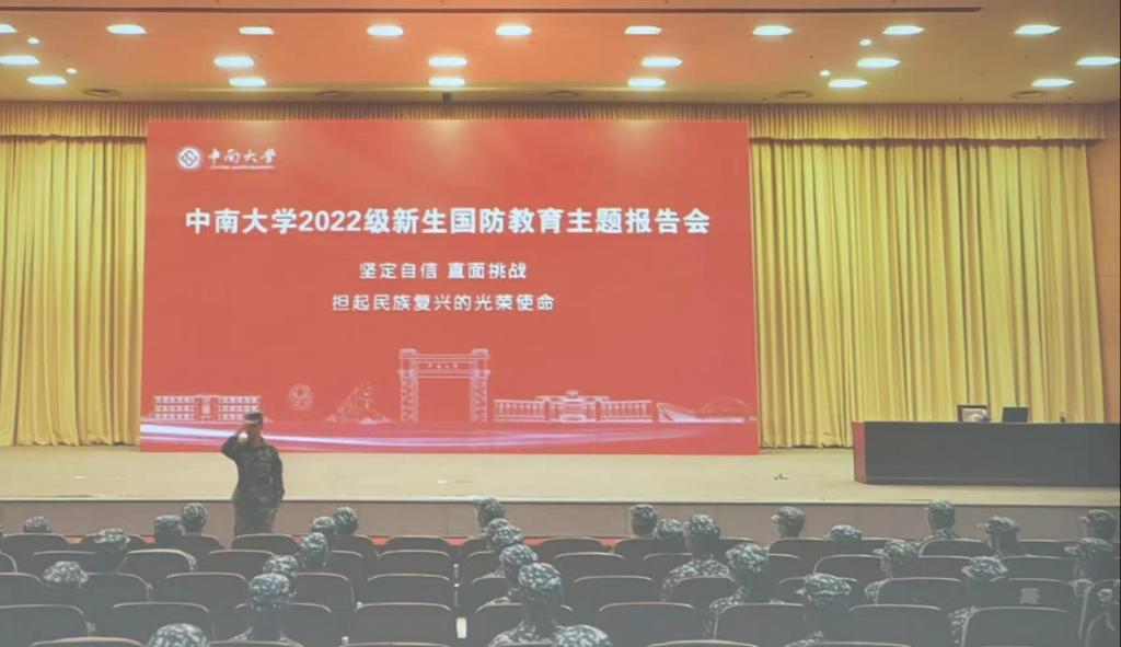 经过了热火朝天的队列考核还有特殊队列的选拔,大家的训练热情在麓山的秋色中有增无减。迄今,同学们已进行了十天的军事训练,本着劳逸结合的原则,今天下午的思政课正是为同学们搭建了一个放松身体、充实思想的平台。本次课程是国防主题报告会,以线下报告与线上直播相结合的方式进行。