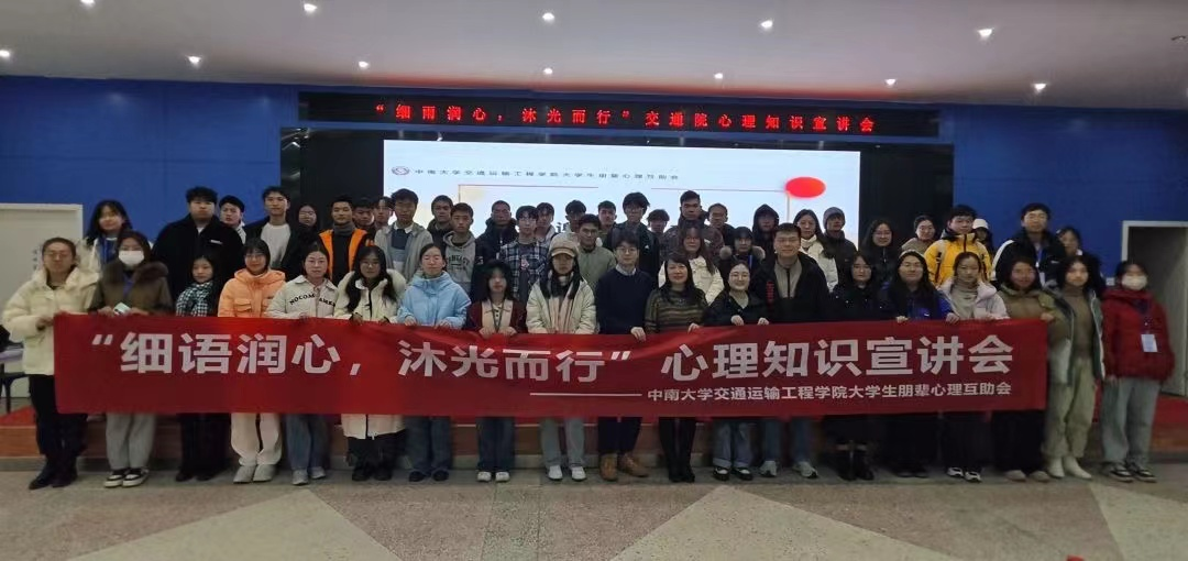 12月17日下午,海角网 大学生朋辈心理互助培训会暨“细雨润心,沐光而行”心理知识宣讲会于铁道校区立志厅举行。心理健康中心专职教师姜美霞、尚文,海角网 心助会指导老师王羽珊、团委副书记郑繁简出席本次会议。交通院全体心理委员、心理专干、全体心助会成员及部分本科生寝室长参加本次会议。本次会议由心助会干事袁媛主持。