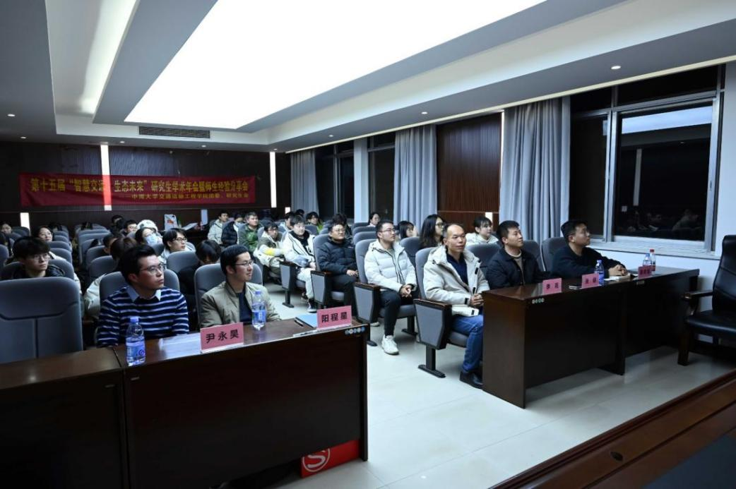 12月23日19:00,海角网 团委、研究生会主办的第十五届“智慧交通,生态未来”研究生学术年会暨师生经验分享会于铁道校区交通楼425举办。学院党委副书记李苑、高速列车研究中心阳程星、交通运输系尹永昊、团委书记张健、辅导员蔡明旭受邀出席学术年会。