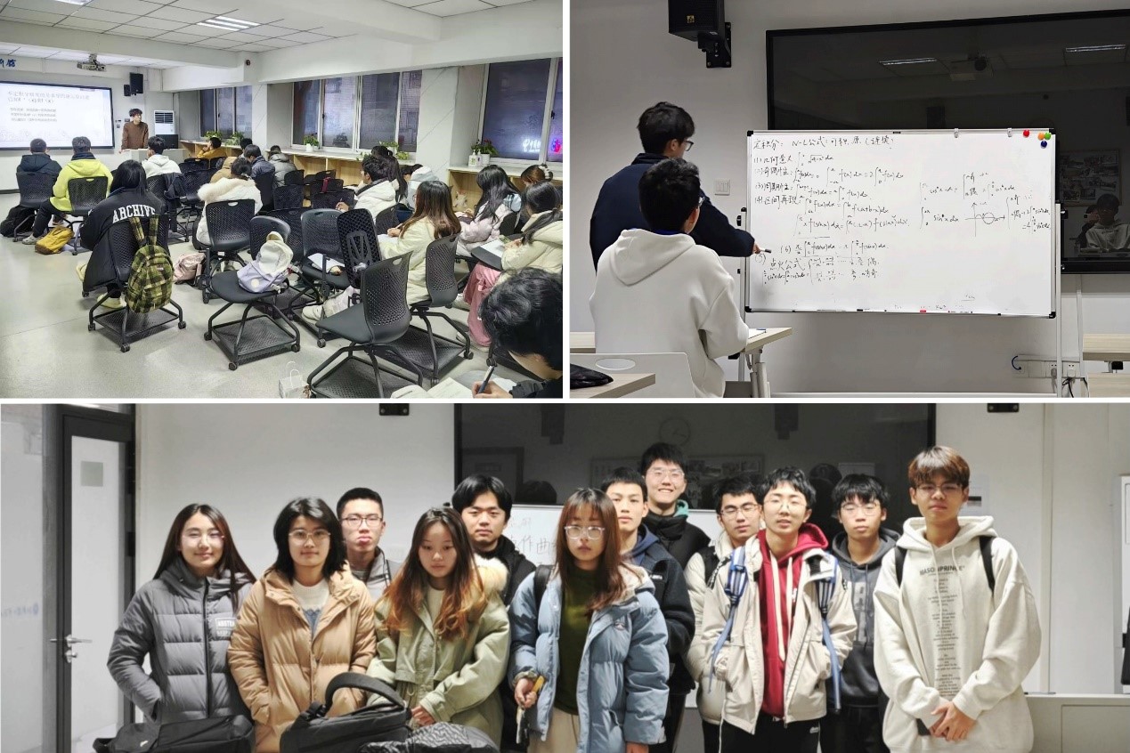 第三周课程的辅学义工分别为交运2308班罗忆歌、交运2306班吴立勇、交运2304班于海东。1月2日,罗忆歌同学讲授了不定积分的知识点,针对同学们在不定积分方面的困惑详细讲解了有关题型的解题方法和技巧;1月3日,吴立勇同学带领同学们复习了定积分的部分,他对一系列知识点进行细化讲解,同时系统性梳理整合知识点,形成复习要点大纲;1月4日,于海东同学给同学们复习了定积分应用的有关内容,他的讲解深入浅出,将抽象的知识在具体的题目中一一体现,强化了知识的应用与理解。三位同学讲解生动,课堂活泼,使同学们充分巩固了积分部分的知识点,显著提高了同学们的复习效率。
