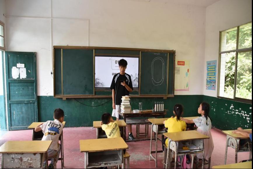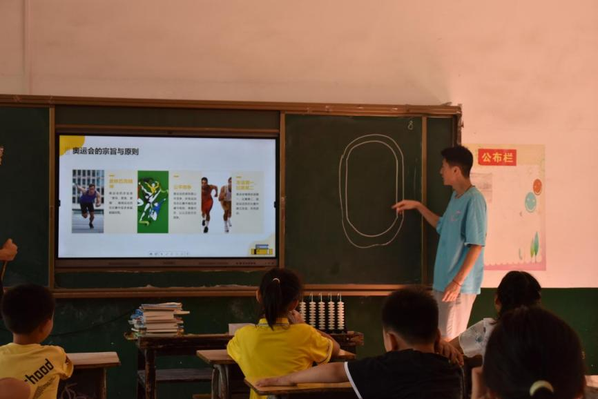 清早的室内体育课上,实践团成员兼体育老师汪辉以奥运会科普为主题,通过图文讲解和互动游戏,使孩子们不仅学习了奥运会的起源、发展历程以及各项运动项目的规则,更深刻体会到了坚持、拼搏与团结的奥运精神。