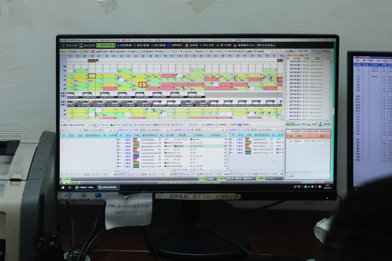接下来团队乘坐车辆来到长沙北站集装箱进出站控制中心,集装箱管理系统的自动化程度之高,使同学们感受到现代物流之美。随后团队来到户外,近距离参观长沙国际铁路港的股道,感受到了我国现代铁路运输的高密度。最后团队来到海关监管区,参观了内部货物作业。