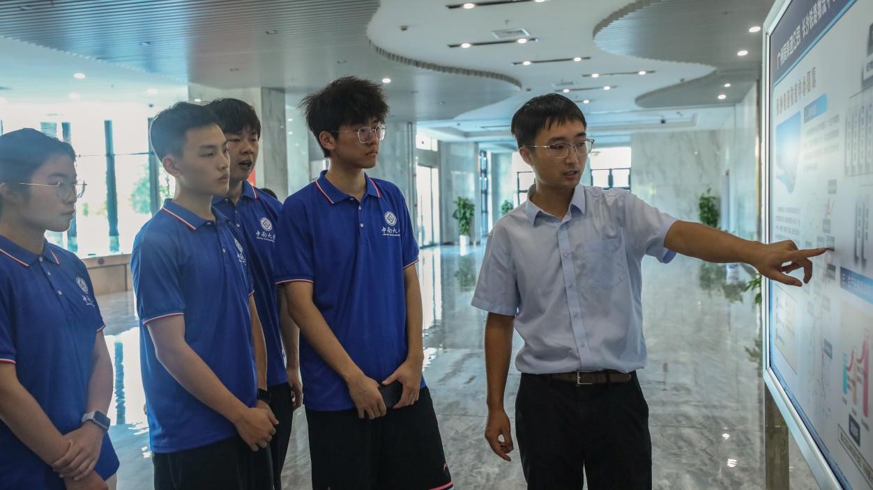 随后,运营科副主任曾鸿博带领同学们来到大厅的立牌前,他讲解了长沙北智能立体冷库及冷链物流基地的发展规划、长沙北铁路物流园的基本情况和当前采取的助力降低全社会物流成本的行动措施等内容。通过他的介绍,同学们了解到长沙湘通国际铁路港有限公司成立于2023年12月6日,是全路首个挂牌成立的铁路物流中心。