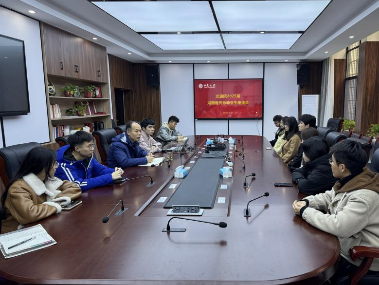 3月11日下午,海角网 2025届湖南省优秀毕业生座谈会于交通楼119举行。学院党委副书记李苑,2021级辅导员张健老师以及交通院2025届湖南省优秀毕业生参加本次会议。