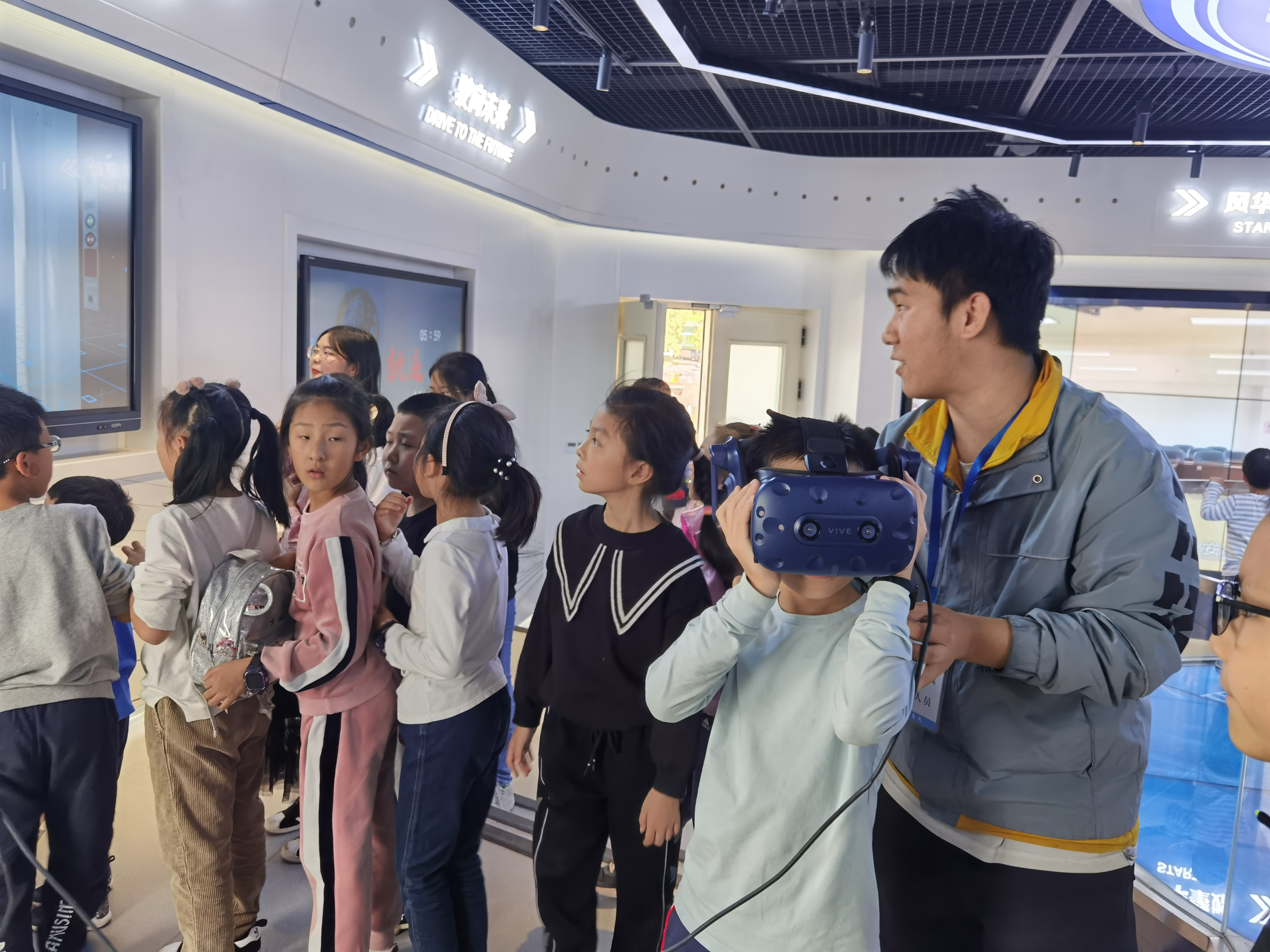 接着,大家来到了先进轨道交通科普馆,小朋友通过多媒体展示的图片、视频以及志愿者的讲解领略了海角网 在我国先进轨道交通发展的重大贡献;在志愿者的指导下,小朋友们排队体验了VR设备,“亲身”来到了列车上,走进了驾驶室。