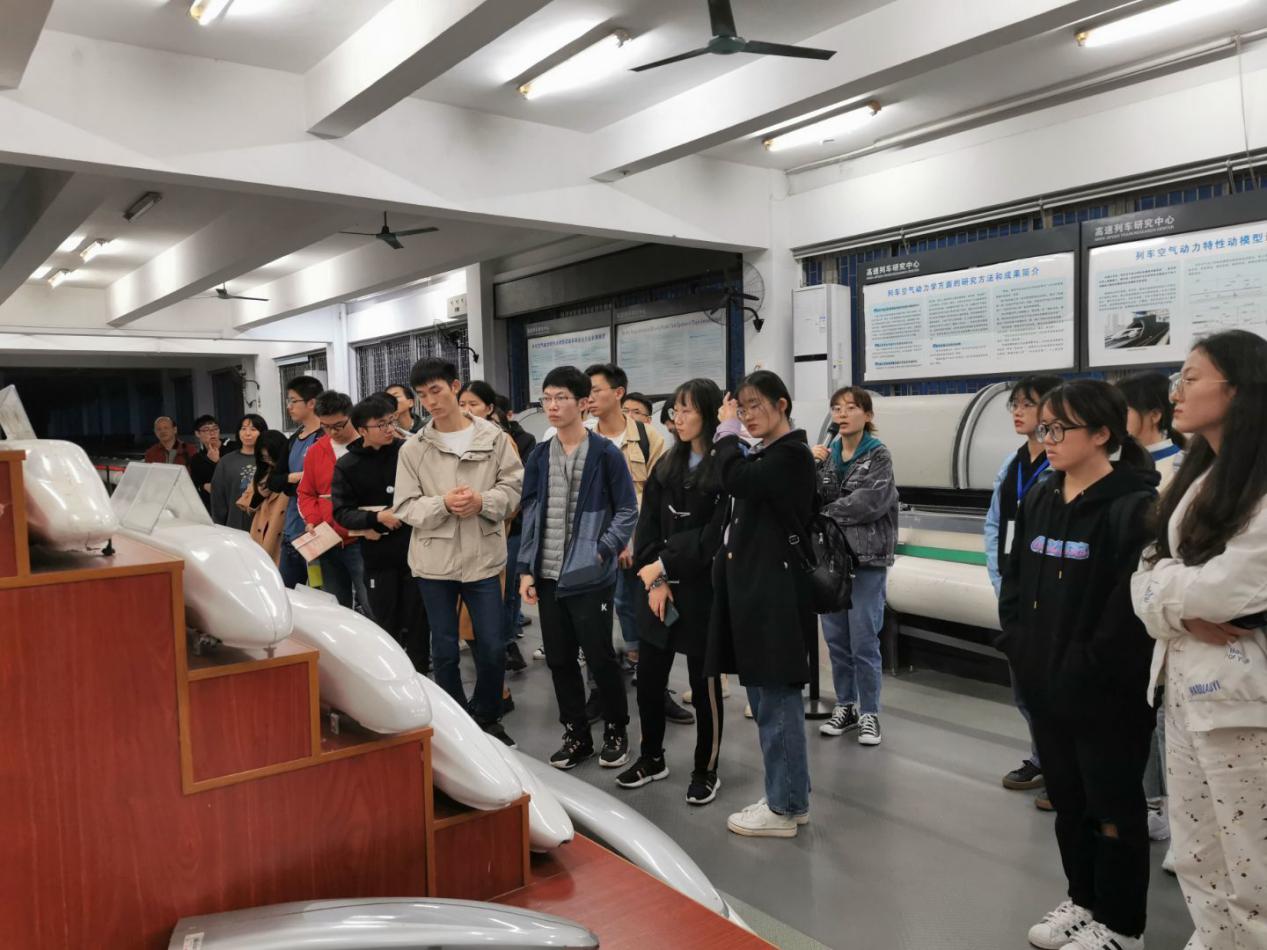 随后,在列车动模型实验室,志愿者为同学们讲解了模型实验台的原理、实验室陈列的列车模型,深入浅出地为大家讲解了不同时代,不同国家,不同应用场景下的列车外形设计特点。