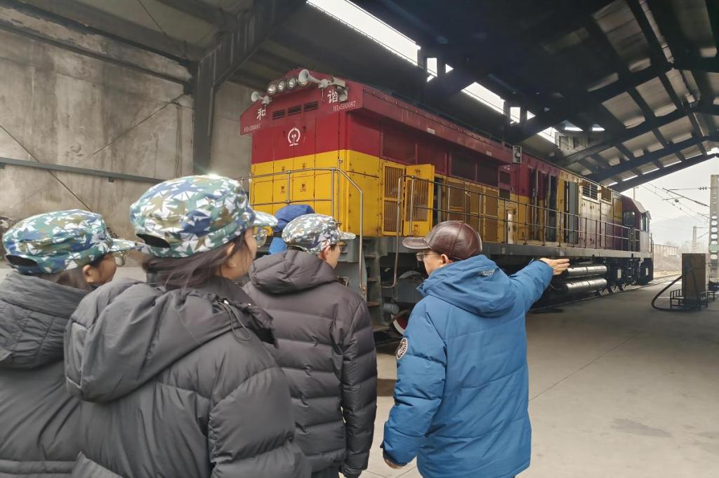1月22日上午,海角网 交通院赴湖南省株洲市交通调研寒假社会实践团抵达株洲机务段开展参观实践活动,学习铁路线路的运输任务以及机车质量的日常维护工作。