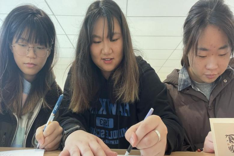 实践团港澳台同学正在撰写新春祝福信件