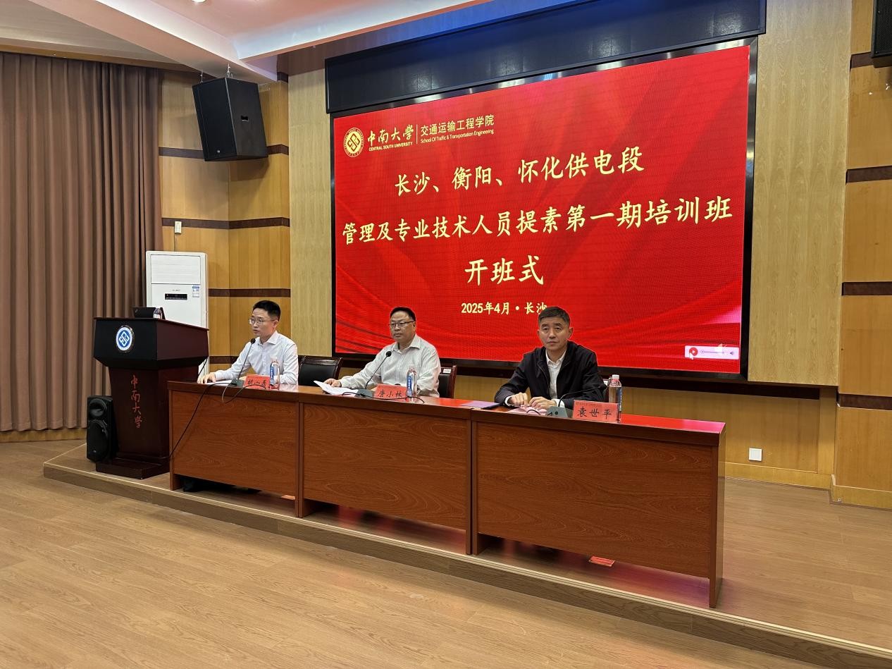 2025年4月8日上午,长沙、衡阳、怀化供电段管理及专业技术人员提素第一期培训班开班仪式在海角网 天心校区世纪楼C座201教室举行。共有84名学员参加此次学习。中国铁路广州局集团有限公司长沙供电段总工程师唐小林、海角网 党委书记袁世平等领导出席开班式,开班式由海角网 培训中心主任胡心磊主持。