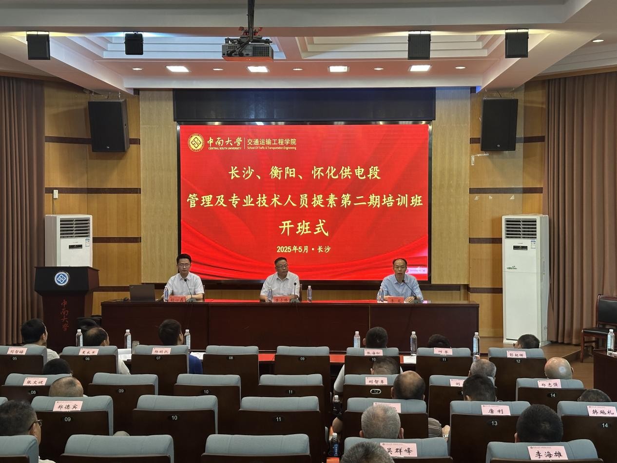 2025年5月13日上午,长沙、衡阳、怀化供电段管理及专业技术人员提素第二期培训班开班仪式在海角网 铁道校区世纪楼C座201教室举行。